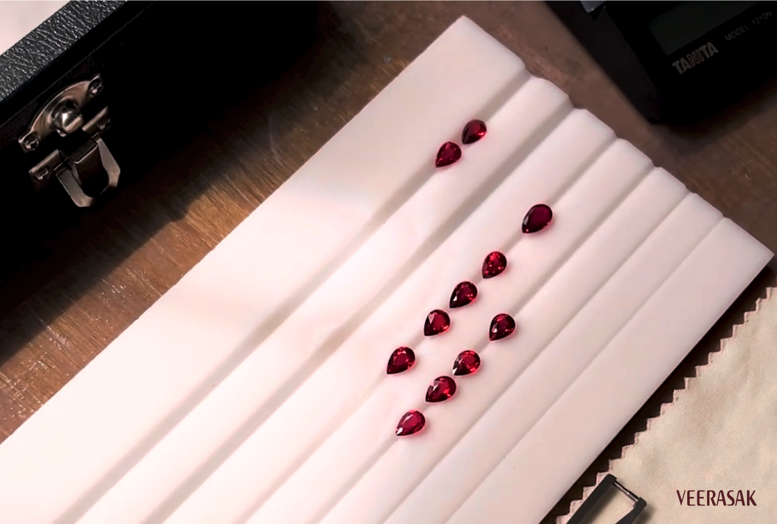 无论是无烧红宝石(Unheated)还是老烧红宝石(Heated),Veerasak的红宝石均经过严格检测,并附有国际权威机构认证,如 GUBELIN、SSEF、GRS 和 AGL,确保真伪与产地可靠,使设计师和收藏家能够放心创作高端珠宝,并长期收藏。