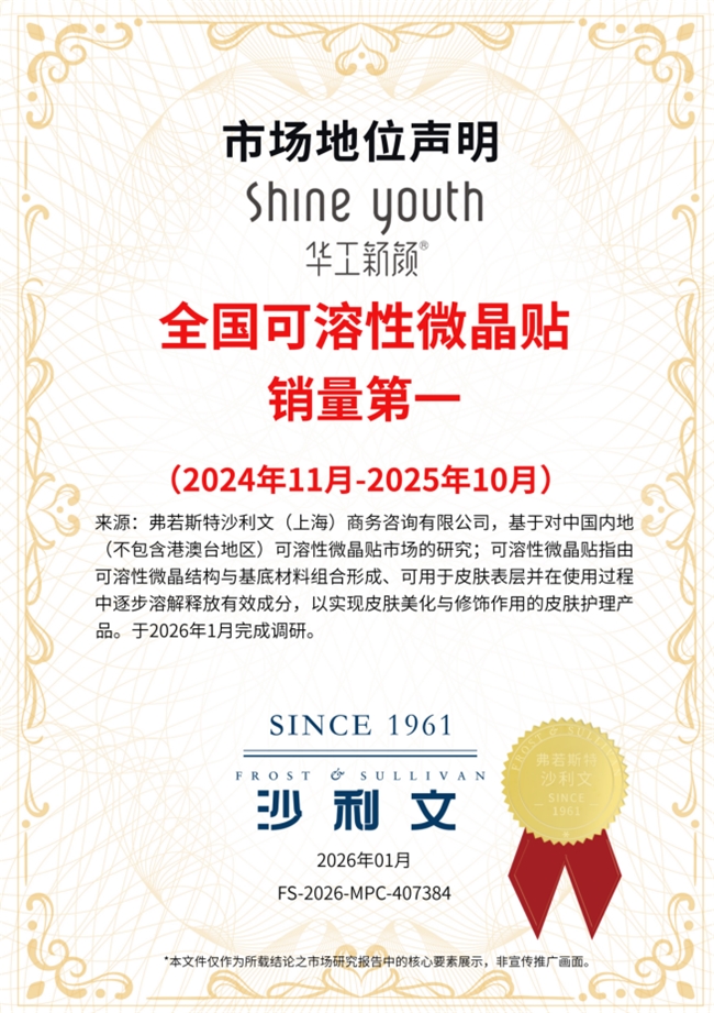 从行业追随者到市场领跑者,华工新颜的崛起之路,正是中国可溶性微针贴(微晶贴)行业实现国货替代、突破国外技术壁垒的发展缩影。随着技术的不断迭代与市场的持续成熟,我们有理由相信,以华工新颜为代表的本土品牌,将凭借更贴合中国消费者需求的产品设计、更硬核的自主技术创新能力,在全球可溶性微针贴(微晶贴)市场的竞争中占据更重要的行业地位,持续以销量第一的标杆姿态引领微晶贴品类高质量发展,书写国货科技护肤的全新篇章。